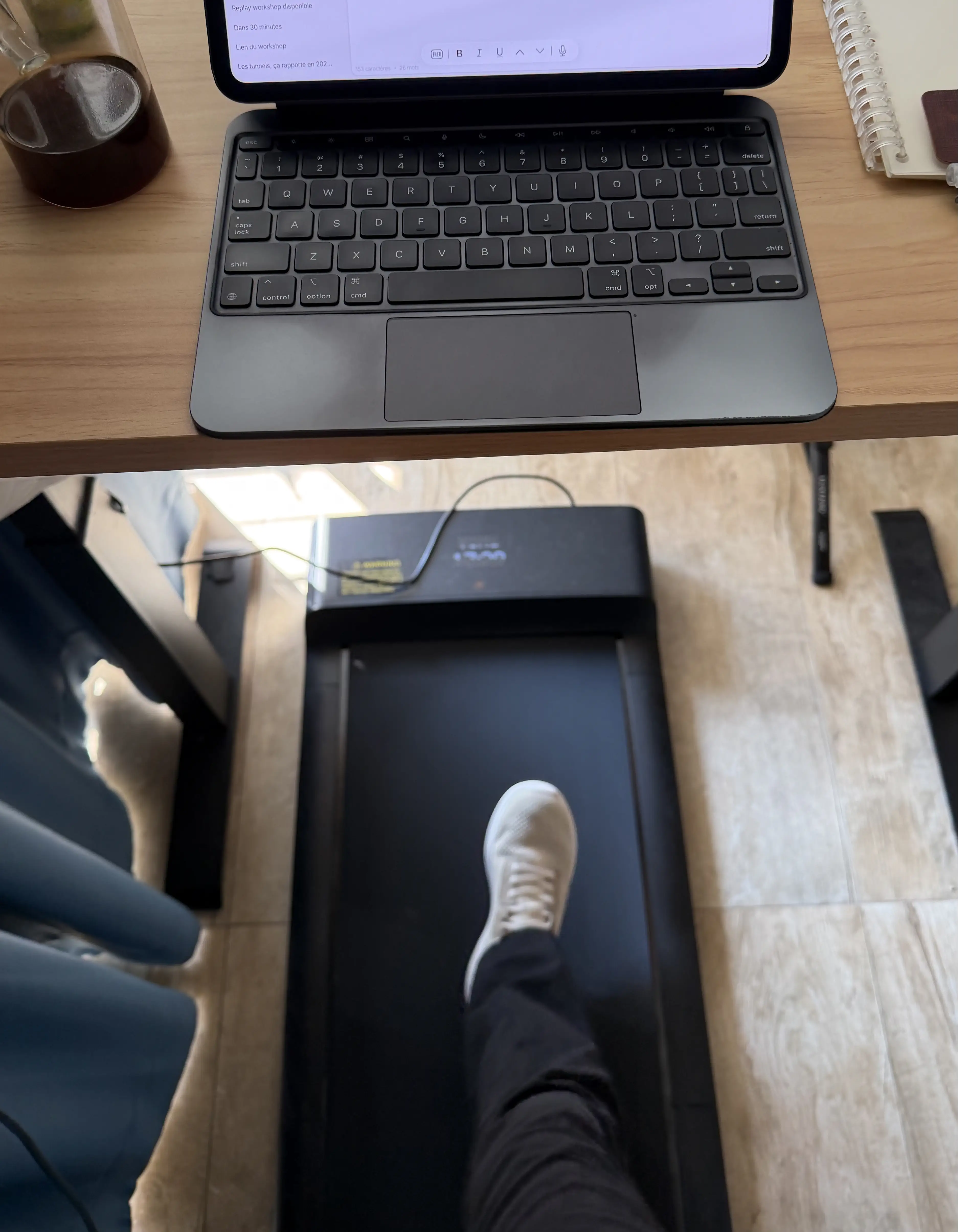 Maintenant je marche sur le tapis, ce qui me permet de rester actif physiquement et de garder l’esprit vif.